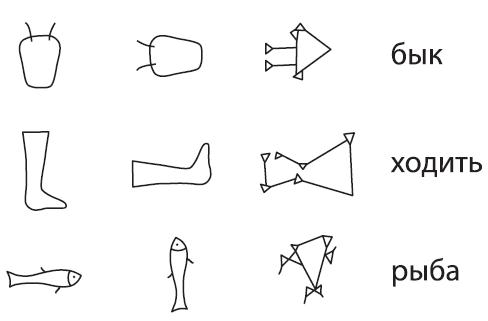 Рис. 6.8. Эволюция шумерских иероглифов.