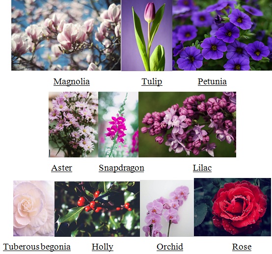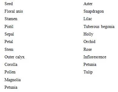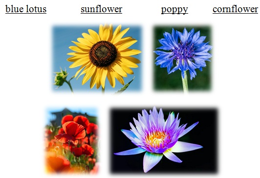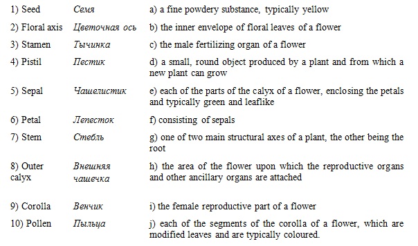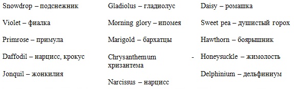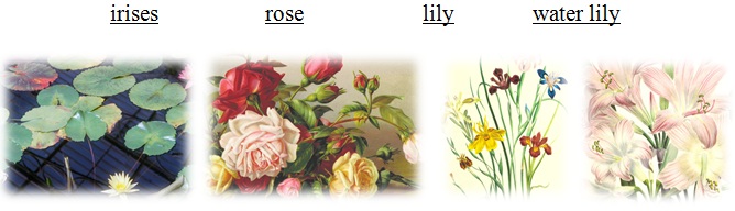 5. Write the names of flowers from the table in exc.3 under the pictures: