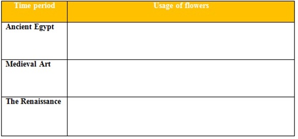 4. Read the text about floral motives in paintings in different ages and complete a timeline with a name of period in art and a brief description of each period:
