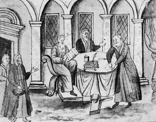 Московские служивые люди. Миниатюра из рукописной книги XVIII в.