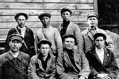1939 г. 1-й ряд (слева направо): бригадир А.Н. Гусев, Н.И. Бобков, председатель колхоза М.З. Захаров, уполномоченный из района; 2-й ряд (стоят): бригадир Я.В. Князев, уполномоченный из района, бригадир М.Е. Сорокин, уполномоченный из района
