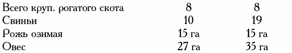 Всего дворов, имеющих индивидуальные посевы, – 144, всего дворов, имеющих коров, – 60, у них коров 60, число дворов, не имеющих коров, но имеющих телок, – 1, число дворов, не имеющих ни коров, ни телок, – 83, число дворов, имеющих свиней, – 25, у них свиней – 25.