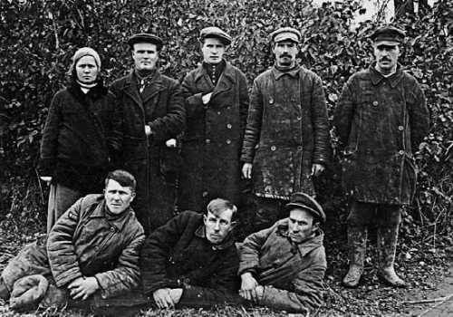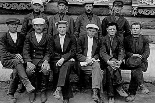 1940 г. Колхоз им. 9 января по итогам 1939 г. стал участником ВСХВ, после чего Главвыставком наградил колхоз им. 9 января дипломом 1-й степени, а лучших колхозников – дипломами. На снимке колхозники-стахановцы, награжденные дипломами ВСХВ (слева направо): П.А. Касаткин, М.Е. Сорокин, В.И. Корнев, П.А. Касаткин, А.Н. Гусев