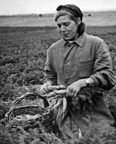 1938 г. Звеньевая М.П. Князева на уборке моркови