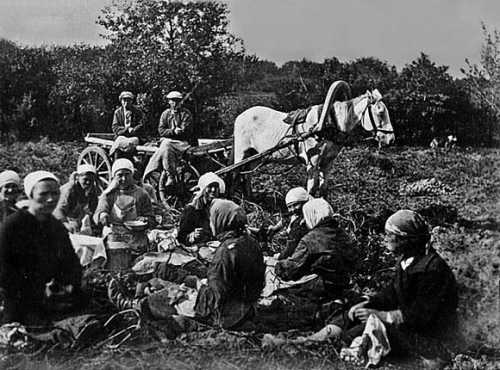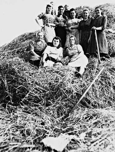 1944 г. Сено женщины стоговали сами, разве что с помощью подрастающих сыновей, которые между делом с упоением барахтались в духмяных сохнущих травах