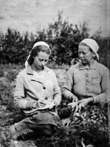 1944 г. А.И. Сковородова (слева) с звеньевой О.Д. Мельниковой