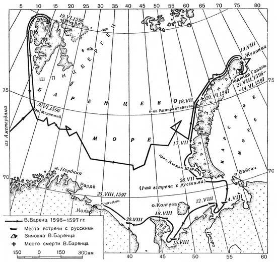 Когда больной матрос умер, Баренц сказал, что ему тоже осталось недолго жить. Он долго рассматривал карту, потом попросил воды и умер. Это произошло 20 июня 1597 г. Один из участников экспедиции писал: «Смерть Виллема Баренца причинила нам немалое горе, ибо он был нашим главным руководителем и незаменимым штурманом». Тело его было опущено в море, которое с середины XIX в. носит имя прославленного мореплавателя.