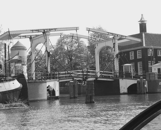 Каналы Амстердама, удивительно спокойные и тихие, могут быть совсем узкими, а могут быть и такими широкими, что по ним одинаково легко скользят катера, баржи и теплоходы. Стальные и чугунные мостики причудливой формы могут иметь подъемный механизм. Такие мостики можно увидеть на полотнах Ван Гога. Есть также в Амстердаме и огромные разводные мосты, которые поднимают для того, чтобы по каналу прошли большие океанские суда. Большое количество мостов, поднимавшихся над водой настолько, чтобы под ними свободно проходили небольшие парусные суда, имело очень крутой подъем. Требовались значительные усилия, чтобы вкатить на них повозки или сани. Возницы подкладывали под полозья промасленную ветошь, чтобы хоть как-то облегчить подъем, а на спуске расстилали солому, обеспечивая торможение.