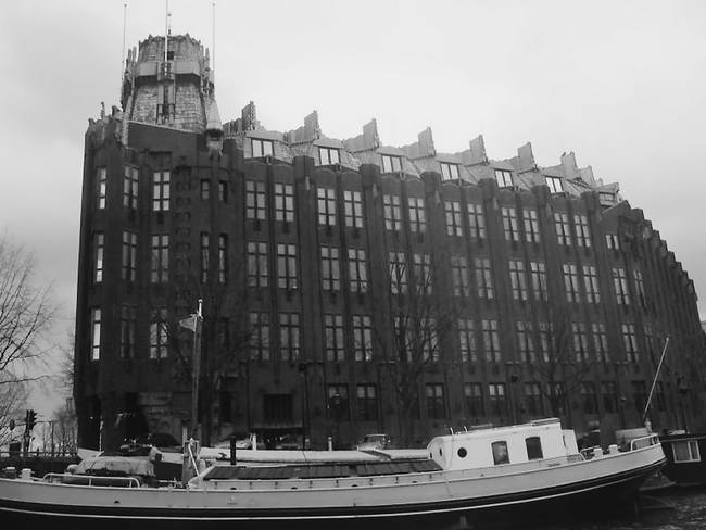 На противоположной стороне улицы, поблизости от стоянки прогулочных катеров, возвышается здание бывшей Биржи, носящей имя ее архитектора – Х. П. Берлаге. Необходимо отметить, что Берлаге, как и все современные голландские архитекторы, опирался на вековой опыт своих предшественников.