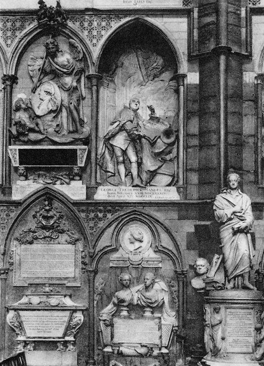 И все же главным образом собор Св. Павла стал усыпальницей английских полководцев. Многочисленные надгробия украшены скульптурными портретами военачальников в древнеримских тогах и сандалиях, изображениями пушек, военных кораблей и других атрибутов. В художественном отношении надгробия малоинтересны, так как очень похожи одно на другое.