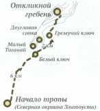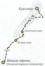 От границы Златоуста до гребня «рукой подать» – всего 12 километров, правда, все в гору. Раньше одним из самых известных и посещаемых мест на Таганае было плато перед скалой, где часто останавливались туристы, – плато Дьявола. В настоящее время администрация парка запрещает разводить здесь костры и ставить палатки. В связи с этим одно из ближайших мест для ночевки – приют Гремучий ключ. Несмотря на мрачное название, люди чувствуют себя в этом «дьявольском месте» отлично. Отсюда группы отправляются на вечернее восхождение – полюбоваться закатом – и возвращаются обычно уже в темноте. Осенью и зимой сумерки в горах наступают быстро, можно легко заплутать, и известны случаи, когда именно громкое эхо помогало отставшим не потеряться, найти свою группу.