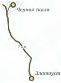 От конечной остановки транспорта в Златоусте до Черной скалы семь километров по очень хорошей тропе.
