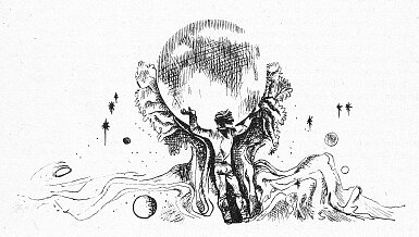Великий боже! Они давно не заглядывали на «главную почку», как они ее называли. Все ожидали плодов. А почка выросла в подобие коровы. Огромной, жирной, мясистой коровы без задних ног. Ее нижняя часть переходила прямо в ствол дерева. Из брюха коровы, если можно так назвать это животное или дерево, свешивались два вымени с десятью сосками. Передние ноги не имели копыт и вообще выглядели как массивные короткие культи. Но голова, голова была настоящая, коровья. Она оглушительно мычала, был виден даже язык, а в глазах, близоруких и каких-то незрячих, было страдание.