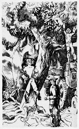 Воду растения пили с удивительной жадностью. После того как около каждого ростка выливали ведро, лужица годы исчезала за пять минут. Но побеги платили за работу удивительным ростом. Через полмесяца это уже были деревья толщиной двенадцать – пятнадцать сантиметров с пятиметровой плоской, как бы срезанной кроной, а почка имела диаметр примерно два метра. Еще полмесяца деревья росли вширь, но больше всего развивались крона и почка.