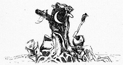 У забора стояла небольшая открытая машина, похожая на какой-то европейский автомобиль без колес. Незнакомец сел в него. Исаак поднял ружье.
