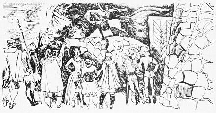 Жак работал без обеда и кончил урок засветло. Управляющий на винограднике не появился, и Жак отправился к дому. Еще издали он заметил толпу крестьян, собравшуюся посреди улицы. Из толпы доносились крики и плач. Там, окруженная односельчанами, прямо на земле сидела Ивонна. Она раскачивалась и драла седые космы на непокрытой голове. Ее прерывистый плач разносился между домами.