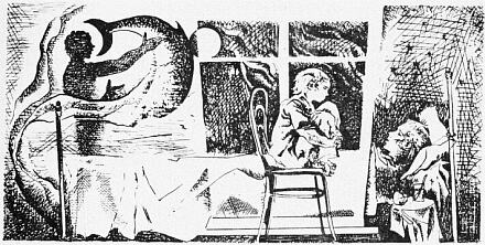 Вокруг него были привычные вещи. Он видел их, но не мог достать. Не мог подняться, сесть. И несмотря на это, я не помню, чтобы у него было плохое настроение. Лежа в постели, он руководил моими играми, придумывал всякие забавы. А в то время, когда он мог подниматься, фантазия его была неиссякаема. Помню, однажды летом, жили мы тогда в Детском Селе на улице Жуковского, отец предложил мне пускать мыльные пузыри. Соломинок у нас не было, но отец очень ловко скрутил бумажные трубочки, разрезал их с одной стороны и загнул концами наружу. Открыв окно, мы уселись на подоконнике. Я так усердно выдувала пузыри, что не заметила, чем занят отец. Вдруг мимо меня пролетел какой-то странный матовый шар. Потом еще и еще. Ребята, гулявшие во дворе, тоже заметили его и побежали ловить. Один мальчик протянул руку, пузырь коснулся его ладони, лопнул и из него пошел дым. Мальчик даже вскрикнул от неожиданности. Но потом стал снова ловить шары с дымом. Я посмотрела на отца. Оказалось, что он пускал в пузыри дым из папиросы. A то бывало из носового платка сделает человечка. Или рисовать со мной сядет. Нарисует какой-нибудь крючочек, закорючку или волнистую линию и предлагает мне остальное самой дорисовать. Или сказки своего сочинения рассказывает. Вернее, даже не сказки, а сказку бесконечную, вроде "Тысячи и одной ночи". И рассказывал он ее мне каждый вечер, перед сном, в течение всей зимы.