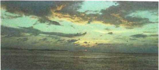 Экипаж занял места около иллюминаторов, аппарат начал медленно погружаться. Сначала цвет воды за стеклом не изменялся, потом он стал голубовато-зелёным, потом синим, тёмно-синим и, наконец, когда стрелка прибора показала триста метров, превратился в чёрный.
