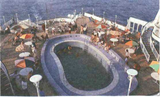 А о другом судне, построенном в те же годы, газеты сообщали: путь в один конец (Лондон-Нью-Йорк) оно проходит меньше чем за четверо суток, везёт две тысячи триста пассажиров. У него четырнадцать палуб, из них десять внутри судна, а четыре (спортивная, солнечная, шлюпочная и прогулочная) в надстройке. Тридцать пять лифтов. Танцевальные залы, читальные салоны и библиотеки, несколько ресторанов. Только в кухне день и ночь трудятся сто тридцать поваров! Вы заболели? К вашим услугам – клиника с операционным залом, рентгеновские аппараты, стоматологический кабинет. Даже комнаты для детей предусмотрели строители: в них и избушки на курьих ножках, и скакалки, и барабаны, и даже настоящий капитанский мостик с рулевым колесом, которое можно вертеть, сколько захочешь.