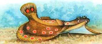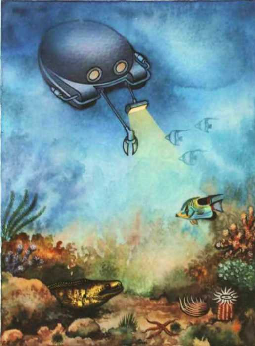 Когда муть, поднятая аппаратом, улеглась, люди увидели вокруг себя жёлто-зелёную равнину с небольшими холмиками, безжизненную и напоминающую фотографии лунной поверхности. А впрочем, вот и она – жизнь! – на склонах холмов виднеется множество чьих-то нор, а около самого иллюминатора вдруг появилась и легла на дно небольшая плоская рыба.
