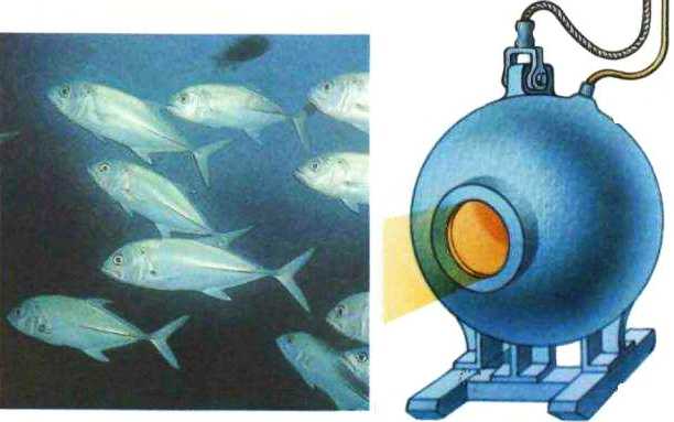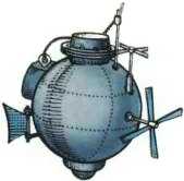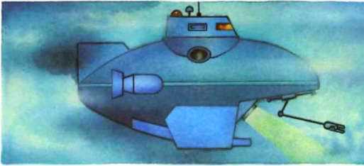 Спущенный с корабля краном за борт аппарат уже покачивался на волнах за кормой судна. Аппарат напоминал по виду металлическую сигару. Это был подводный дирижабль – батискаф, наполненный лёгким бензином, имеющий два гребных винта и стальной шар – кабину для людей, способную выдержать большое давление.