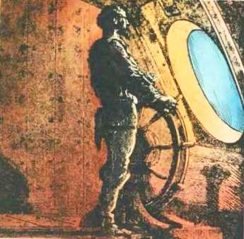 …За окном комнаты, где жил Жюль Верн, медленно угасала вечерняя заря. Страницу за страницей покрывал писатель неровными строчками. Он писал роман о корабле будущего. Это был подводный гигант, движимый электричеством. Яркий свет прожектора освещал перед ним дно на полмили вперёд. В каютах отдыхали после вахты смуглокожие матросы, а суровый капитан Немо наносил на карту маршрут. На борту корабля чернели буквы «Наутилус».