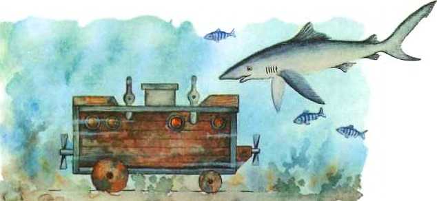 – О, предусмотрено и это! Кондуктор откидывает крюк, тележка остаётся на дне, а вагон всплывает. Ловко придумано?