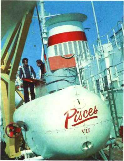 Два человека – командир и наблюдатель – с корабля перешли на резиновой лодке на батискаф, осмотрели его корпус и, закрыв за собой люк, скрылись внутри.