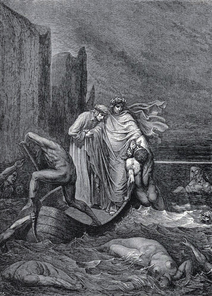 Dante and Virgil crossing the river Styx.