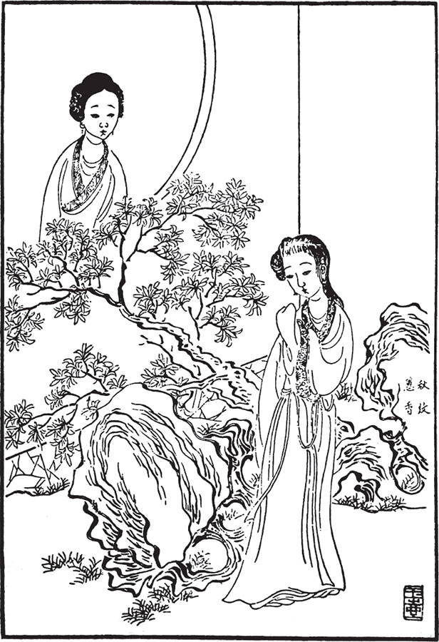 В это время во двор вошла Фын-цзе и, увидев стоящую под окном Пин-эр, спросила: