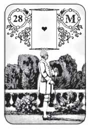 Если во время расклада карты № 28 и № 29 (МУЖЧИНА и ЖЕНЩИНА) далеки друг от друга, это означает ослабление связи между ними, если они в разных концах расклада («на разных полюсах») – отсутствие связи.