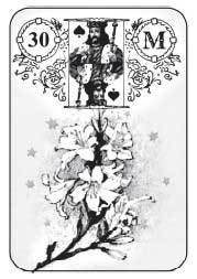 ЛИЛИЯ – образ чистоты и избранности. Лилия была эмблемой французской королевской династии. Часто лилия упоминается в Библии («Подобно лилии среди чертополохов выглядит среди женщин моя возлюбленная»). Счастливая карта, символизирующая высокое положение. Если выпала эта карта, значит, рядом находятся хорошие, достойные люди. Радость общения и гармоничные взаимоотношения. Возле ДЕРЕВА символизирует долгую и счастливую жизнь.