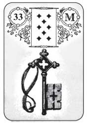 Сосредоточьтесь на вопросе, затем перемешайте карты. Возьмите верхнюю карту и посмотрите ее номер. Затем отсчитайте по этому номеру карту в колоде (например, выпала карта ДОМ, она имеет номер 4, значит, сверху из колоды отсчитываете карты и берете четвертую, смотрите ее номер и отсчитываете следующую (третью) карту. Значение этих карт будет разъяснением вопроса.