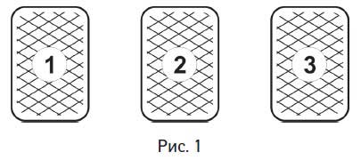 Сконцентрируйтесь на проблеме, перемешайте карты и со словами: «Что покажется по интересующему меня вопросу?», – разложите карты на три кучки лицевой стороной вниз (рис. 1). Переверните каждую и смотрите ответ по трем нижним картам.