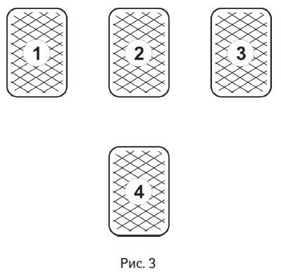 Первая карта – прошлое, которое влияет на настоящую ситуацию. Вторая карта раскрывает состояние вопроса и действующие силы в настоящем. Третья – будущее. Четвертая карта – совет, как поступать и что делать, каких принципов придерживаться в данной ситуации (рис. 3).