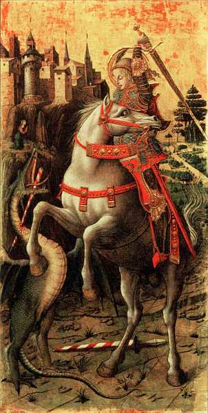 Карло Кривелли (1430–1495) Святой Георгий убивает дракона 1470. Дерево, темпера, позолота. 94x47,8 см