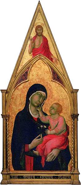 Симоне Мартини Мадонна с Младенцем. Центральная часть алтаря «Богоматерь со святыми». Около 1320. Дерево, темпера, позолота. 99x60,7