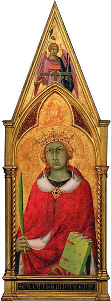 Симоне Мартини Святая Екатерина Александрийская. Часть алтаря «Богоматерь со святыми». Около 1320. Дерево, темпера, позолота. 86,3x42,5