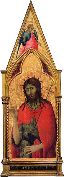 Симоне Мартини Святой Иоанн Креститель. Часть алтаря «Богоматерь со святыми». Около 1320. Дерево, темпера, позолота. 86,3x42,5