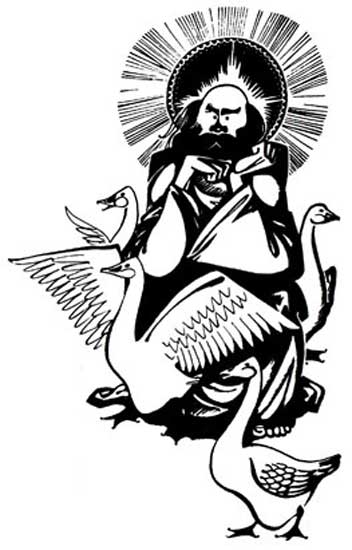 И пошли дальше. Господь – впереди, апостол – позади, как полагается. А на селе праздник, пьют, гуляют… Там – на гармони играют, там – песни поют.