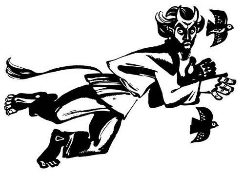 Он за гусем, а гусь от него. Он за гусем, а гусь от него. Манил, манил и заманил на другой бережок. А сам крылья распустил – и назад, туда, где прынцевы портки лежали. Забрал их в лапы и полетел. А в тех портках, в кармане-то, огнивце спрятано было.