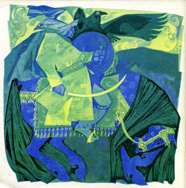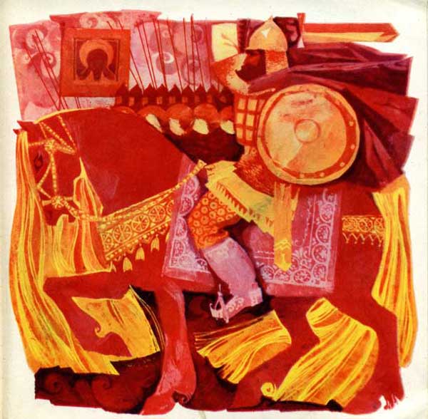 Опоясался он мечом своим широким и поехал в заставу городецкую, а за ним и войско пошло и другие богатыри, нехотя, поехали.