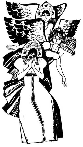 Как приказал он, так все и сделали. И князь с княгинею, со всеми богатырями могучими пошли опять в палаты белокаменные, сели за столы дубовые, принялись за яства сахарные, за питва медвяные.