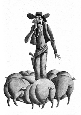 Ну, а поросята, когда испугались бешеного быка и бросились бежать, добежали до самой Мексики и остались жить на мексиканском побережье. Испанское судно подхватило оттуда на борт одного борова и несколько свинок и доставило их в теперешнюю Калифорнию.
