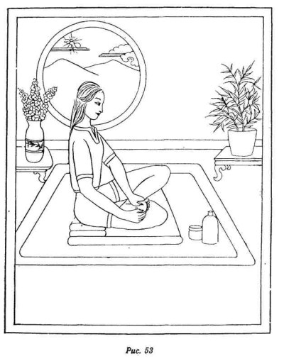 Выполните полный цикл движений в обоих направлениях три или девять раз. Затем отдохните в сидячей позе 5—10 минут, распределяя ощущения, пробужденные этими движениями, по всему телу, а также за его пределы, в окружающее пространство.