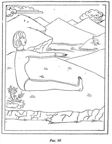 колен, медленно наклоняйте вперед туловище от талии вверх вместе с руками. При этом спина будет вначале слегка выгнута назад. Продолжайте наклоняться вперед и вниз, очень медленно и плавно; голова, туловище и руки должны двигаться вместе – голова не свешивается вниз, и руки не отделяются от головы. Наклоняясь вниз, снимайте напряжение в груди, мышцах живота и нижних энергетических центрах.
