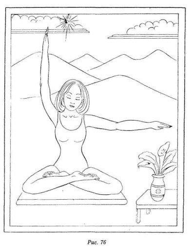 Очень медленно снимите напряжение и посидите спокойно 5 минут, расширяя чувства, стимулированные упражнением. Выполните упражнение три или девять раз, делая пятиминутные перерывы на спокойное сидение. В заключение посидите 10—15 минут и продолжайте расширять ощущения внутри и вокруг тела.