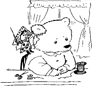 Катя, сама с напёрсток, взяла иглу, нитку, влезла Медведю на плечо – ухо пришивать. Матрёшки плясали перед Медведем, чтобы он отвлёкся и развлёкся. Он и вправду не заметил уколов иглы, обрадовался пришитому уху, заплясал. И вот беда – наступил на ногу Лошадке.