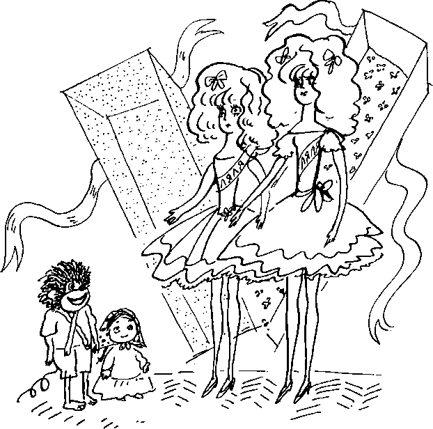 – Здо́рово мы всех обманули! – шепнула Ляля Голубая, поправляя розовое платье.