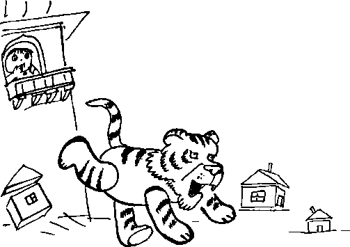 Ванька-Встанька вылез из куста, где прятался от зверя. Ну и Ляли! Тигра не боятся! А вдруг им всё-таки нужна защита? Ванька-Встанька бросился к крыльцу. Тигр на бегу задел его хвостом. Ванька-Встанька, конечно, не упал, но долго качался. Ежели хвост такой сильный, то каков сам зверь!